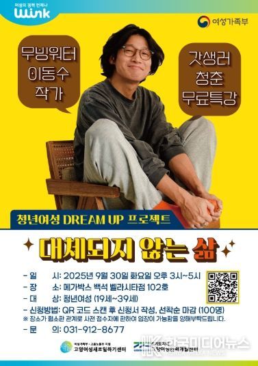 [ 한국미디어뉴스 문상수 기자 ] 고양여성새로일하기센터·고양여성인력개발센터는 청년 여성들의 진로 설계와 자기 개발을 지원하고자 오는 30일 오후 3시, 메가박스 백석벨라시타점에서 청년 여성 대상 무료 특강을 개최한다.