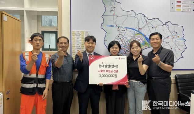 [ 한국미디어뉴스 이보영 기자 ] 시흥시 생활폐기물 수집ㆍ운반업체인 ㈜현대실업은 지난 9월 17일 추석 명절을 앞두고 대야동 마을자치과에 후원금 300만 원을 전달했다.