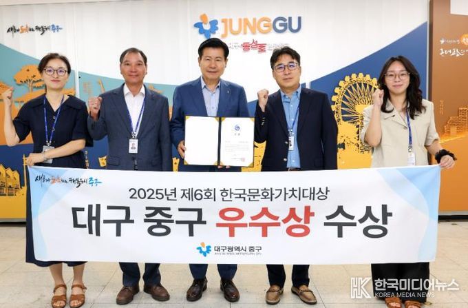 [ 한국미디어뉴스 이보영 기자 ] 대구 중구는 (사)한국문화가치연구협회가 주관한 ‘2025년 제6회 한국문화가치대상’에서 우수상을 받았다고 밝혔다.