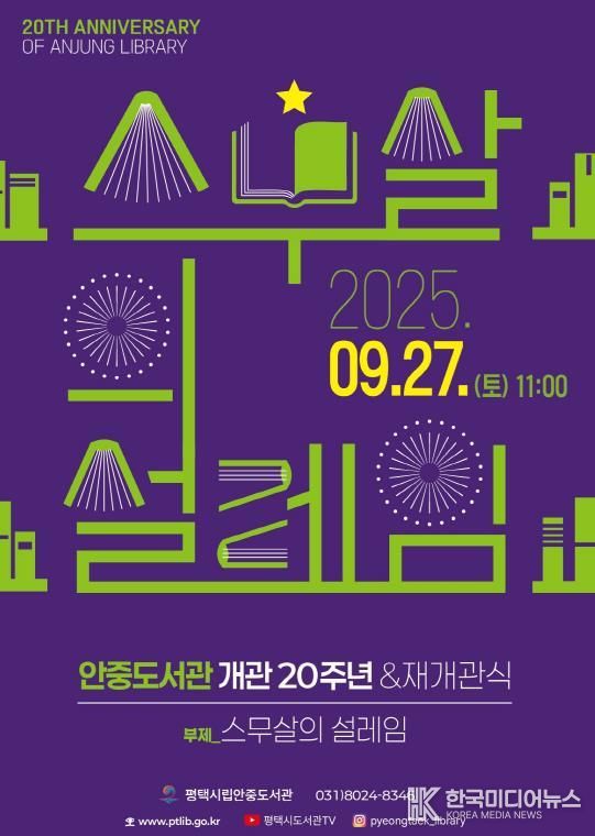 정장선 평택시장은 “안중도서관은 지난 20년간 서부지역 대표 공공도서관으로 시민들의 지식·정보·문화의 중심지 역할을 해왔다”며 “이번 재개관을 계기로 시민이 함께 만드는 열린 도서관으로 거듭나겠다”고 밝혔다.