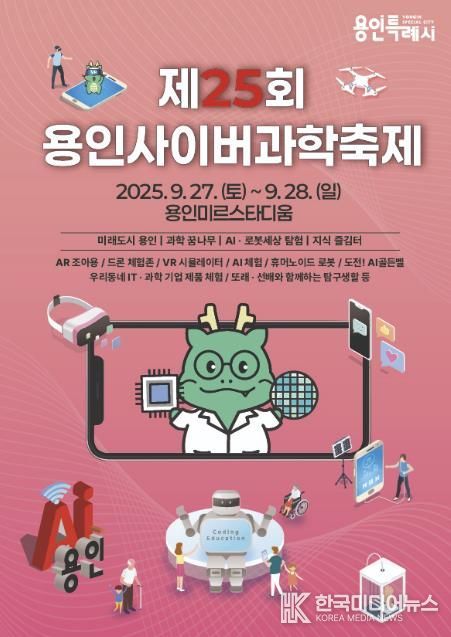 [ 한국미디어뉴스 이원영 기자 ] 용인특례시는 27일부터 28일까지 용인미르스타디움‘에서 열리는 ’제30회 용인시민의 날‘ 행사에서 ’2025 용인사이버과학축제‘를 개최한다고 19일 밝혔다.