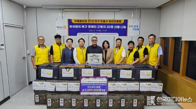 한울산로타리클럽 키존 장채원 회장은 “추석은 가족과 함께 따뜻한 정을 나누는 명절인데, 근로 장애인분들이 이번 나눔을 통해 조금이라도 풍성하고 즐거운 명절을 보내시길 바란다”며 “앞으로도 로타리클럽은 지역사회와 함께하는 다양한 사회공헌 활동을 이어가며 이웃과 동행하는 나눔의 가치를 실천해 나가겠다”고 전했다.