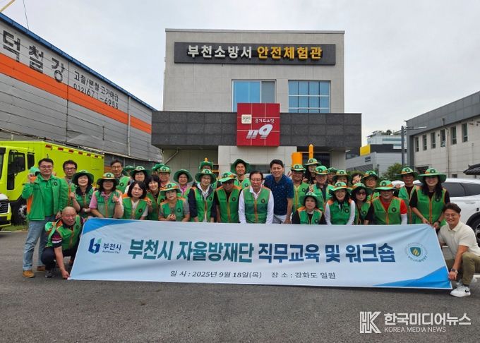 [ 한국미디어뉴스 김만길 기자 ] 부천시는 지난 18일 부천시 자율방재단(단장 김태웅)과 오정119안전센터가 강화도 일원에서 ‘2025년 하반기 직무교육 및 워크숍’을 실시했다고 19일 밝혔다. 이번 교육은 자율방재단 동대표들의 재난 대응 역량과 조직 결속력 강화를 목적으로 진행됐다.