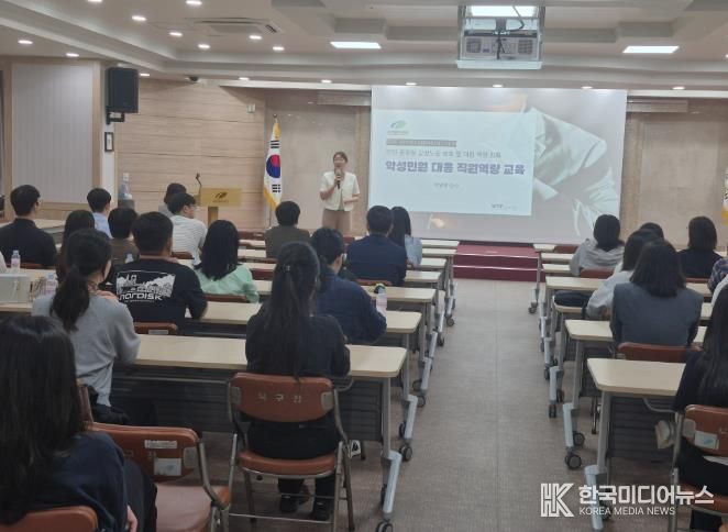 교육은 폭언·폭행 등 목적이 정당하지 않은 악성민원으로부터 민원업무 담당자를 보호하고 지원에 도움이 되고자 ▶악성민원인 응대원칙 ▶사례별 민원 분석 및 대응요령 ▶감정대립 예방법 ▶ 화난 민원인 대처 ▶거절 대응 사례 실습 내용으로 구성됐다.
