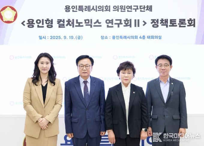 [ 한국미디어뉴스 이원영 기자 ] 용인특례시의회 의원연구단체 ‘용인형 컬처노믹스 연구회Ⅱ’가 19일 의회 대회의실에서 ‘용인시 문화관광산업 육성을 위한 컬처노믹스 전략 수립’ 연구용역과 관련해 정책토론회를 개최했다.