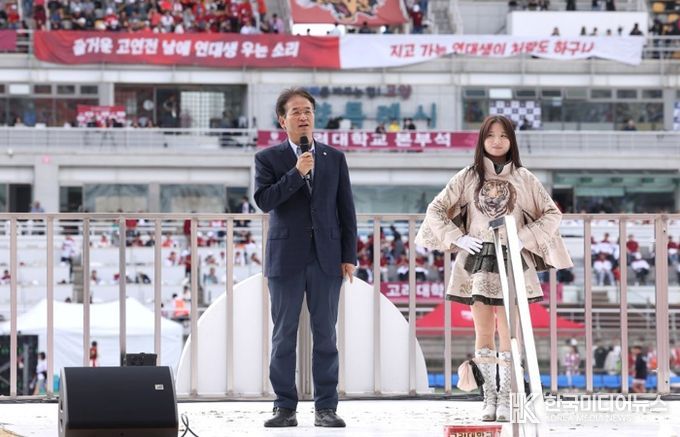 [ 한국미디어뉴스 문상수 기자 ] 이동환 고양특례시장이 지난 20일 고양종합운동장에서 열린 ‘2025년 정기 고연전’ 축구경기에 참석했다.