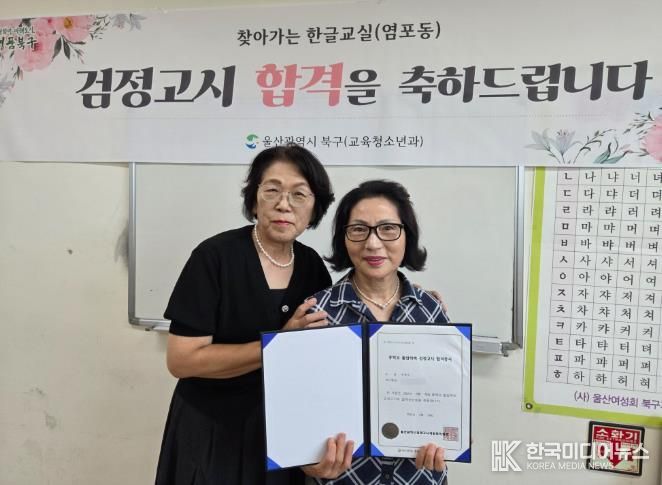 [ 한국미디어뉴스 이보영 기자 ] 울산 북구는 '찾아가는 한글교실' 염포동 수강생 주복순(71) 씨가 제2회 중졸 검정고시에 합격했다고 22일 밝혔다.