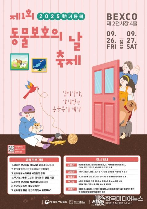 [ 한국미디어뉴스 이원영 기자 ] 농림축산식품부는 9월 26일 ~ 9월 27일 이틀간 부산 벡스코 제2전시장에서 ‘제1회 동물보호의 날’ 기념행사를 개최한다고 밝혔다.