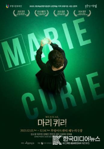 ‘마리 퀴리’는 (재)예술경영지원센터의 2025 공연예술 지역 유통지원 사업에 선정된 작품으로, 여성이자 이민자로서 겪어야 했던 고난 속에서도 업적을 이뤄낸 과학자 마리 퀴리의 삶을 그려낸 창작 뮤지컬이다.