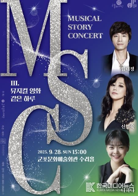 [ 한국미디어뉴스 이보영 기자 ] (재)군포문화재단은 오는 9월 28일 오후 3시 군포문화예술회관 수리홀에서 기획공연 “뮤지컬 스토리 콘서트 Ⅲ. 뮤지컬 영화 같은 하루”를 선보인다.