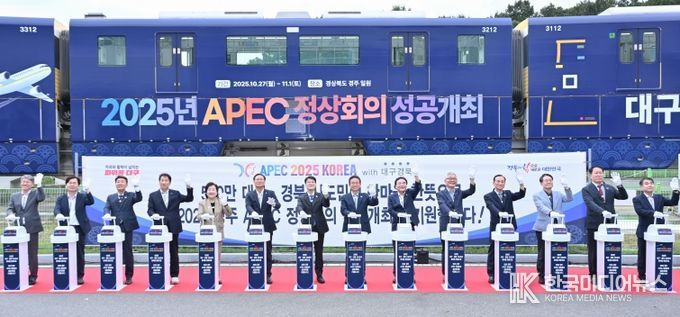 [ 한국미디어뉴스 이보영 기자 ] 대구광역시와 경상북도는 공동협력의 일환으로 9월 22일 오후 3시, 대구 도시철도 3호선 칠곡차량기지에서 2025년 APEC 정상회의 성공 개최를 기원하는 ‘대구경북 APEC 열차’ 출발 행사를 개최했다.