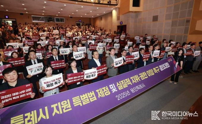 [ 한국미디어뉴스 이원영 기자 ] 용인특례시는 22일 오후 수지구 평생학습관 큰어울마당에서 ‘특례시 지원에 관한 특별법 제정 촉구 시민결의대회’를 열고 정부에 시민의 뜻을 담은 특별법 제정의 필요성을 강력히 촉구했다.