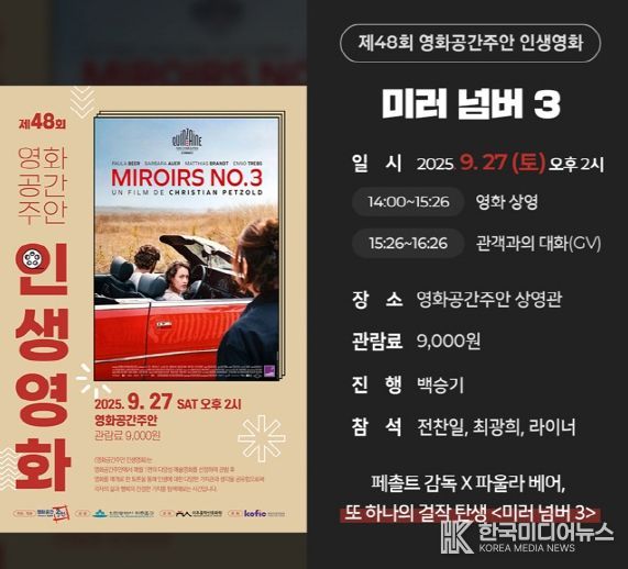 이번 상영작은 올해 칸국제영화제 감독 주간 초청작 ‘미러 넘버 3’로, 영화공간주안 4관에서 상영된다.