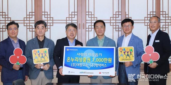 [ 한국미디어뉴스 이보영 기자 ] ㈜대원고속·㈜평택버스는 지난 17일 추석에 앞서 취약계층을 위해 평택행복나눔본부로 온누리상품권 1천만 원을 전달했다.