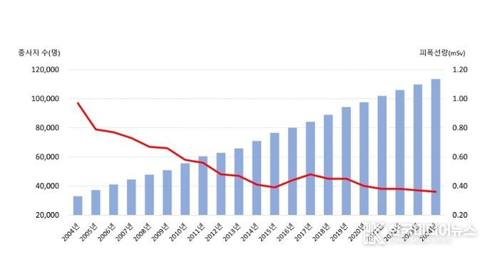 이번 연보에 의하면, 2024년 방사선관계종사자 수는 113,610명이고, 1인당 연간 평균 피폭선량은 0.36 mSv(밀리시버트)로 통계자료를 처음 발표한 2004년에 비해 방사선관계종사자 수는 3.4배(2004년 33,000명) 증가했으나, 피폭선량은 63% 감소(2004년 0.97 mSv) 한 것으로 확인됐다.