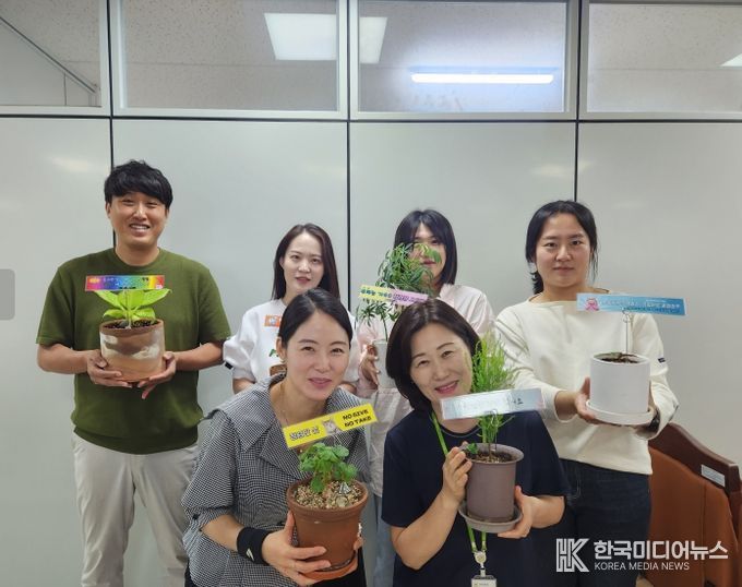 직원들은 개인 화분에 직접 제작한 청렴 문구 팻말을 꽂아 사무실에 비치하며, 생활 속 청렴 실천을 다짐했다.
