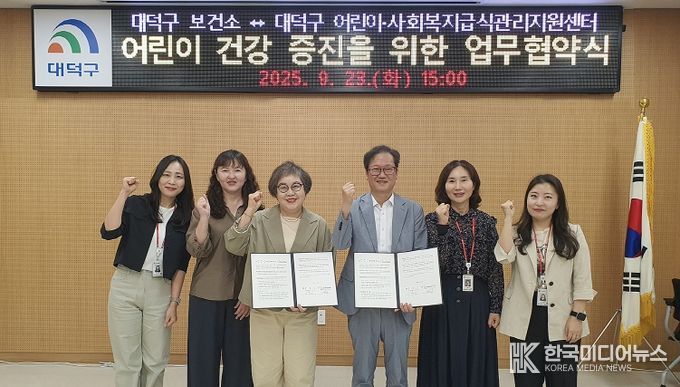 [ 한국미디어뉴스 이보영 기자 ] 대전 대덕구(구청장 최충규)는 23일 대덕구 어린이·사회복지급식관리지원센터와 지역 어린이의 올바른 식습관 형성과 건강한 성장을 위한 업무협약을 체결했다고 밝혔다.