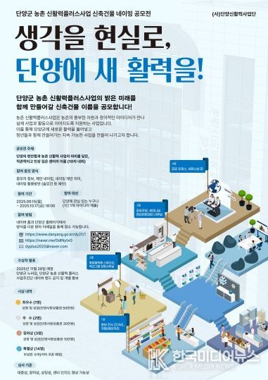 [ 한국미디어뉴스 김풍옥 기자 ] 충북 단양군 농촌신활력플러스사업 추진위원회는 다음 달 17일까지 단양읍 별곡리 29-1에 신축 중인 (가칭) ‘농촌신활력스마트혁신센터’의 명칭 선정을 위한 공모전을 진행한다고 밝혔다.