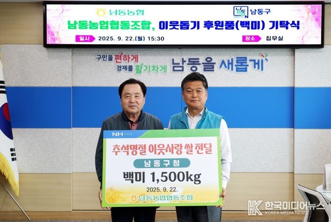 [ 한국미디어뉴스 김만길 기자 ] 인천시 남동구는 남동농업협동조합(조합장 한윤우)로부터 취약계층을 위한 추석맞이 백미 1,500kg(450만 원 상당)을 기탁받았다고 24일 밝혔다.
