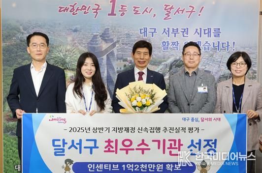 [ 한국미디어뉴스 이보영 기자 ] 대구 달서구는 행정안전부 주관 ‘2025년 상반기 지방재정 신속집행 평가’에서 최우수기관으로 선정돼 특별교부세 1억 2천만 원을 확보했다.