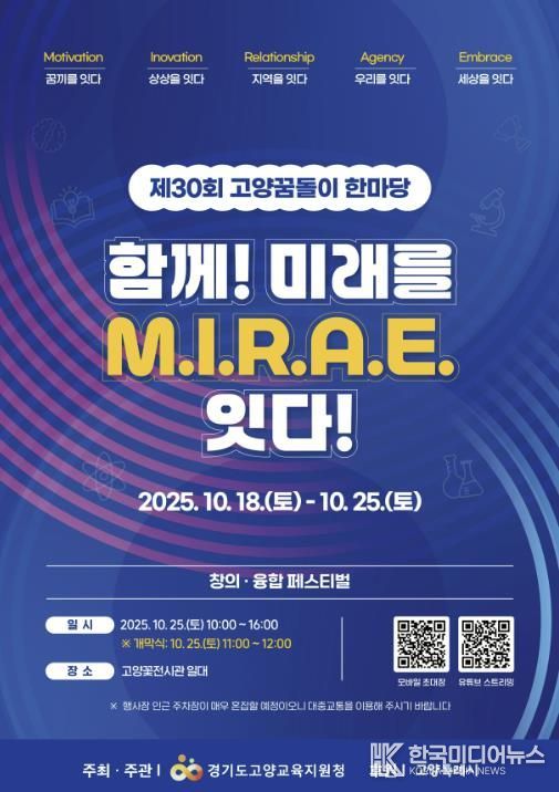 이현숙 교육장은 “고양꿈돌이 한마당은 지난 30년간 학생, 학부모, 교사, 지역사회가 함께 만들어온 고양 대표 교육 축제”라며 “앞으로도 학생들의 꿈꾸고 도전하는 리더로서 자기주도성과 혁신적 상상력, 나아가 세상을 향한 포용성을 키워가는 장이 되길 바란다”고 말했다.