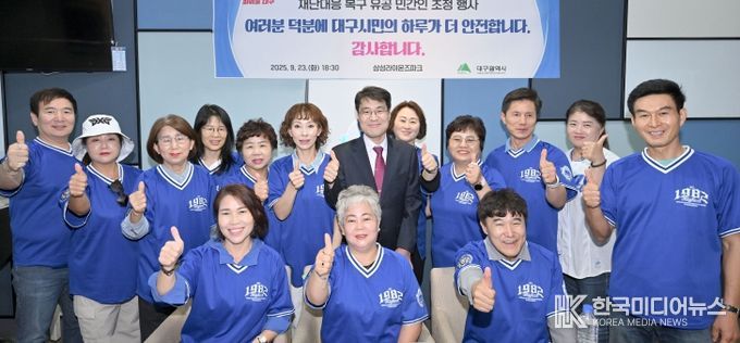 [ 한국미디어뉴스 이보영 기자 ] 김정기 대구광역시장 권한대행 행정부시장은 9월 23일 오후 6시 30분, 삼성라이온즈 홈경기 현장에서 산불·폭염·폭우 등 자연재난에 적극 대응한 구·군 지역자율방재단과 의용소방대원들을 초청해 감사의 마음을 전하며 격려했다.