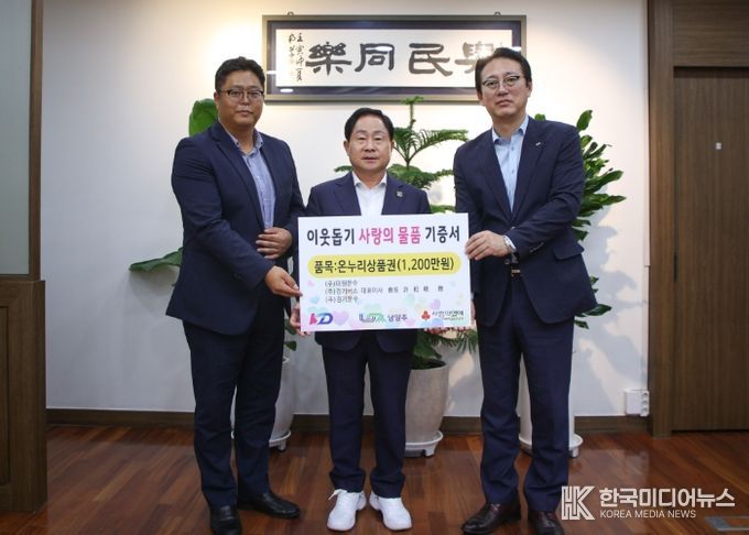 [ 한국미디어뉴스 김서안 기자 ] 남양주시는 24일 KD운송그룹이 추석 명절을 맞아 온누리상품권 1만 원권 1천200매(1천2백만 원 상당)를 남양주시복지재단에 기부했다고 밝혔다.