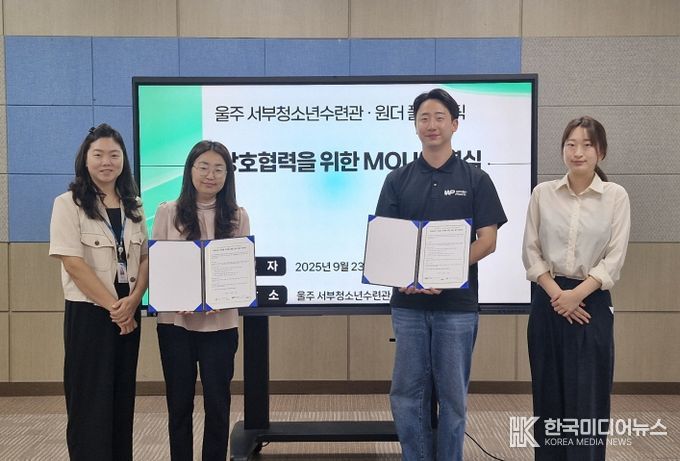 [ 한국미디어뉴스 이원영 기자 ] 울주군시설관리공단(이사장 최인식) 서부청소년수련관은 9월 23일, 자원순환 및 환경 교육 활성화를 위해 ㈜원더플라스틱(대표 김민석)과 업무협약을 체결했다.