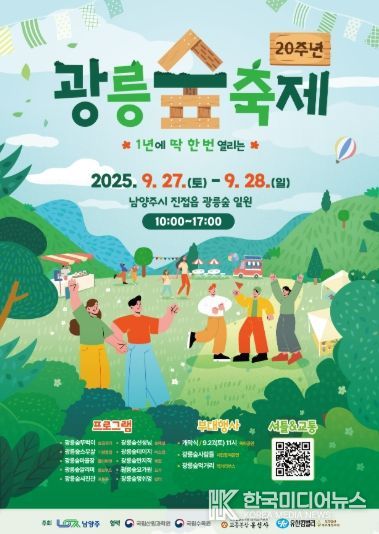 개막식은 27일 오전 11시 봉선사 일주문 옆 메인무대에서 열리며, 국악인 하윤주와 테너 이동신이 축하공연을 선보인다. 특히 올해는 유한킴벌리와 함께 △숲속꿀잠대회 △친환경 캠페인부스 △숲테이위드미(유투브 영상) 제작 등 숲의 공익적 가치를 알리는 협력 프로그램을 마련해 20주년의 의미를 더한다.