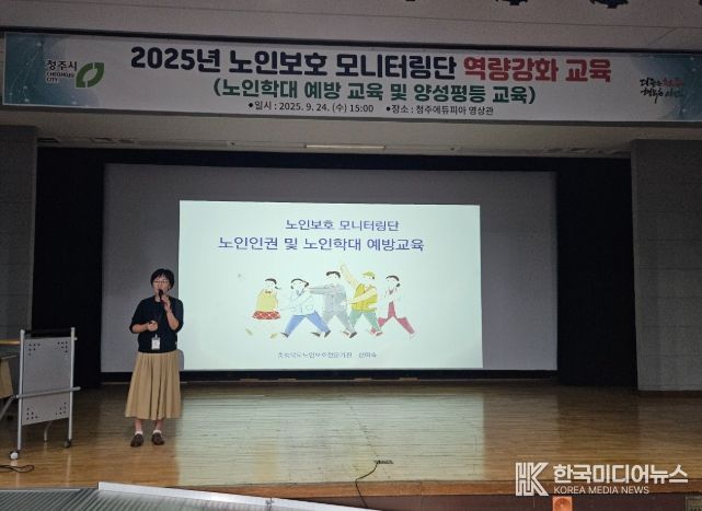 [ 한국미디어뉴스 김풍옥 기자 ] 청주시는 24일 에듀피아 영상관에서 청주시 노인보호 모니터링단 63명을 대상으로 노인인권·학대예방 및 양성평등 교육을 실시했다.