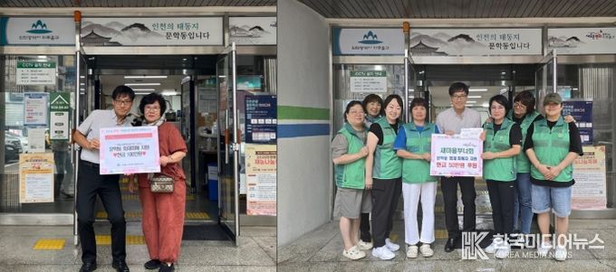 이어, 문학동 새마을부녀회(회장 우삼순)도 화재 피해를 겪은 외국인 다자녀가구에 50만 원을 기부했다.