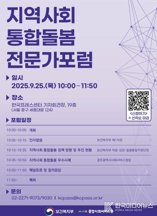 [ 한국미디어뉴스 이원영 기자 ] 보건복지부와 중앙사회서비스원은 9월 25일 오전 10시, 한국프레스센터(서울시 중구 소재)에서 ‘지역사회 통합돌봄 정책 방향 및 추진현황’을 주제로 전문가 포럼을 개최했다.