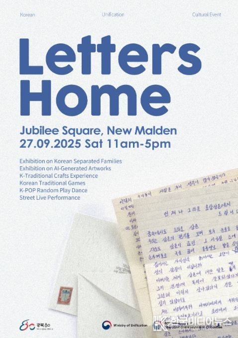 [ 한국미디어뉴스 이원영 기자 ] 통일부는 9월 27일, 영국 최대 한인 밀집 지역인 뉴몰든에서 ‘Letters Home’(집으로 보내는 편지)을 주제로 한 재외동포 통일문화행사를 개최한다.