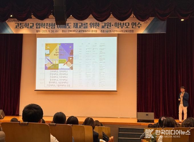 [ 한국미디어뉴스 이보영 기자 ] 대구서부교육지원청은 9월 24일 경북대학교 글로벌플라자 효석홀에서 관내 중학교 3학년 학부모와 교원을 대상으로 ‘2026학년도 고등학교 입학전형 이해도 제고를 위한 연수’를 실시했다.