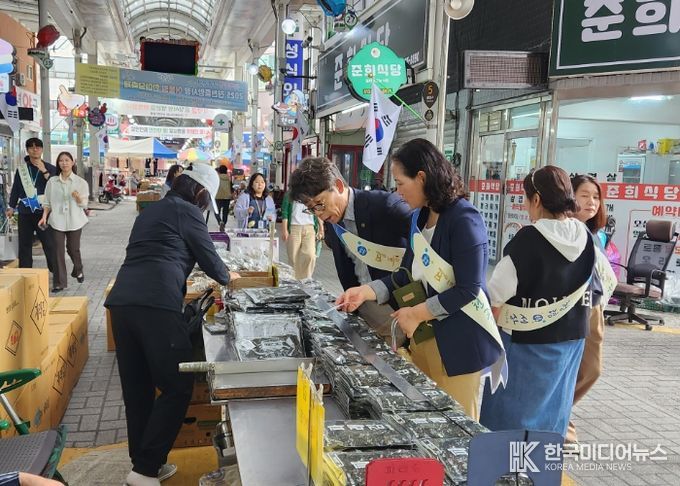 [ 한국미디어뉴스 김풍옥 기자 ] 진천교육지원청은 추석 명절을 맞이하여 9월 25일(목) 진천중앙시장에서 전통시장 장보기 행사와 함께 청렴-친절 캠페인을 펼쳤다.
