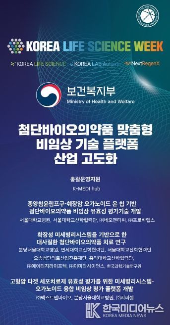 한편, K-MEDI hub는 보건복지부 ‘질환모델 기반 첨단바이오의약품 비임상 유효성 평가기술 개발 사업’의 총괄 운영기관으로 동물실험 대체 수요에 대응하고 연구개발 성과가 사업화로 이어지도록 지원하고 있다.