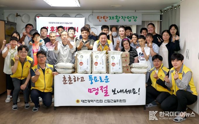 [ 한국미디어뉴스 이보영 기자 ] 대전시의회 송인석 산업건설위원장(국민의힘, 동구1)은 추석 명절을 앞둔 25일 동구 소재 장애인 재활시설 탄탄재활작업장(원장 이미정)을 방문해 위문품을 전달했다.