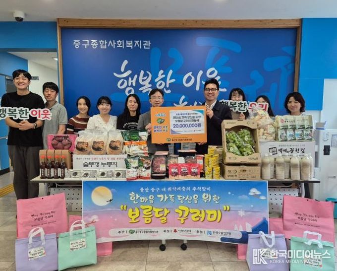 [ 한국미디어뉴스 이보영 기자 ] 한국수출입은행 울산지역본부가 9월 25일 오전 10시 30분 울산중구종합사회복지관을 찾아 취약계층을 위한 2,000만 원 상당의 추석맞이 보름달 꾸러미 135개를 전달했다.