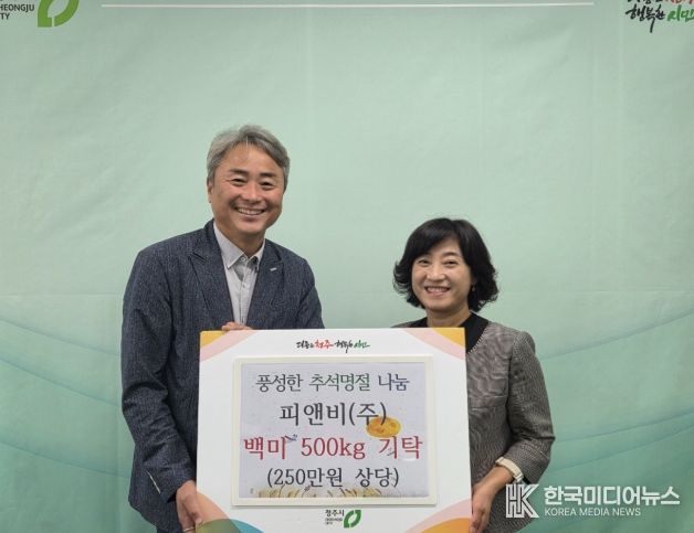 [ 한국미디어뉴스 김풍옥 기자 ] 피앤비㈜(대표 이현주)는 25일 청주시청을 방문해 추석 명절 전 취약계층 및 사회복지시설 지원에 써다라며 250만원 상당 백미 500kg(10㎏ 포장 제품 50포)을 기탁했다.