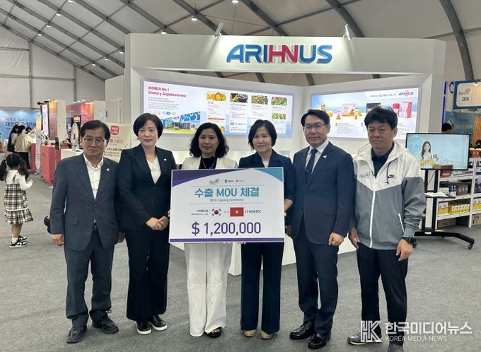 25일 2025제천국제한방천연물산업엑스포 조직위는 산업관에 입주한 ㈜아리너스와 베트남 엘티 코비텍(LT KOVITEC)간 120만불(약 17억) 규모, 수출협약을 체결했다고 이날 밝혔다.