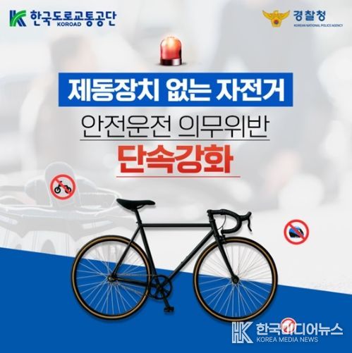 제동장치 없는 자전거를 타는 행위는 매우 위험한 행위로 가정과 학교에서 꼭 어린이와 청소년들에게 알려주세요!