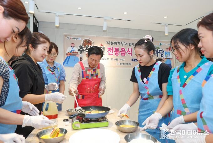 [ 한국미디어뉴스 이보영 기자 ] 대구 중구청과 중구가족센터는 추석 명절을 맞아 지난 25일 중구생활문화센터에서 다문화가족 봉사단 15명과 함께 전통음식 만들기 및 나눔 행사를 진행했다.