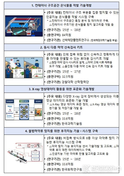 연구단 공모에는 총 24개 연합체(컨소시엄)가 지원하여 평균 경쟁률 6대 1을 기록했으며, 이는 관세행정 연구개발에 대한 산업계·학계·연구계의 높아진 관심과 기대를 보여주는 의미 있는 결과이다. 최종 선정된 4개 연구단은 세관 현장에서 즉시 활용 가능한 기술을 개발하고, 실증하는 역할을 하게 된다.