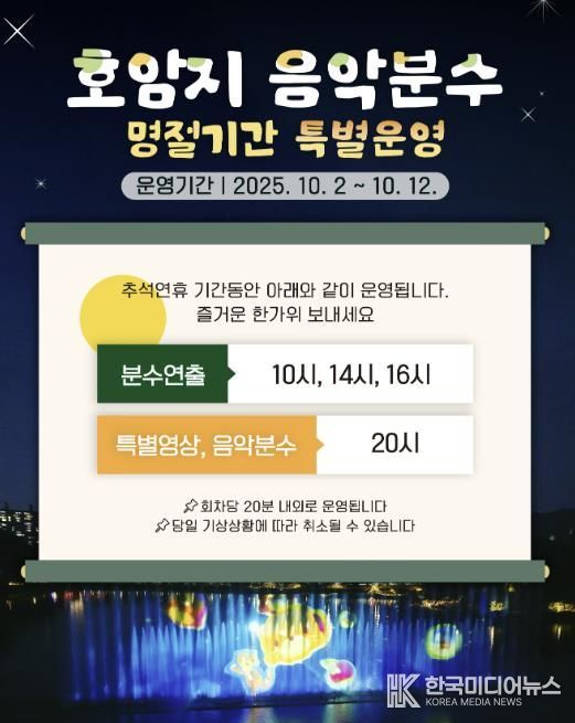이 기간에는 오전 10시, 오후 2시, 오후 4시에 각각 20분 동안 분수 공연을 선보이며, 야간에는 오후 8시에 화려한 조명과 레이저 연출이 어우러진 특별 공연이 20분간 펼쳐질 예정이다.