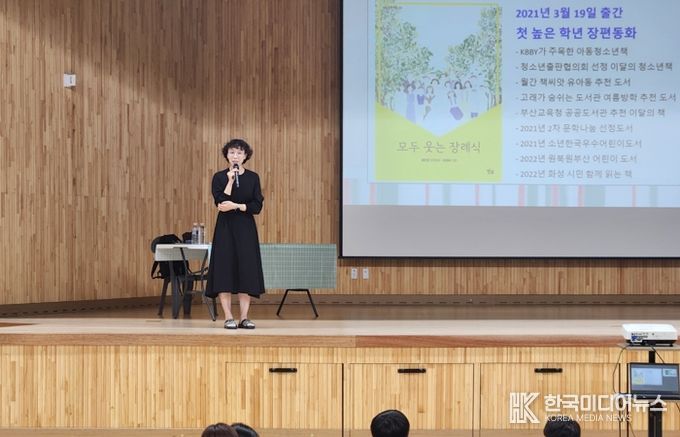 [ 한국미디어뉴스 김풍옥 기자 ] 영동교육도서관은 9월 ‘독서의 달’ 행사의 하나로 9월 26일 영동초등학교 5학년 학생들과 『고양이 해결사 깜냥』으로 유명한 홍민정 작가와의 만남을 운영했다.