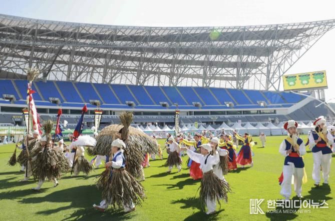 [ 한국미디어뉴스 이원영 기자 ] 용인특례시는 제66회 한국민속예술제 청소년부 경연에 경기도 대표로 참가하는 용인시청소년연희단이 27일 용인미르스타디움의 ‘2025 대한민국 조아용 페스티벌’ 행사장에서 출정식을 겸한 전통 놀이 시연을 했다고 28일 밝혔다.