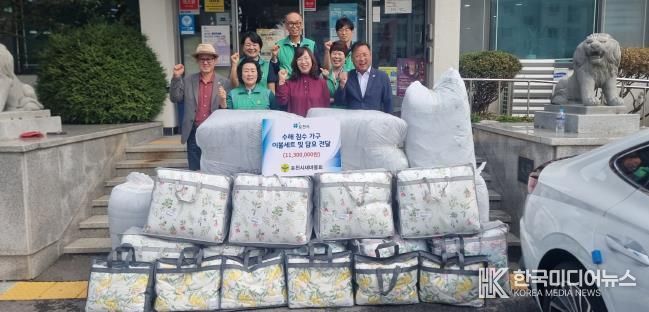 [ 한국미디어뉴스 김서안 기자 ] 포천시새마을회는 지난 7월 집중호우로 피해를 입은 수해 침수가구에 이불세트와 담요를 전달했다.