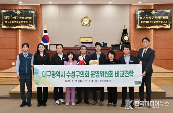 [ 한국미디어뉴스 이보영 기자 ] 대구 수성구의회 운영위원회 소속 의원들이 울산 중구의회를 찾아 교류행사를 가졌다.