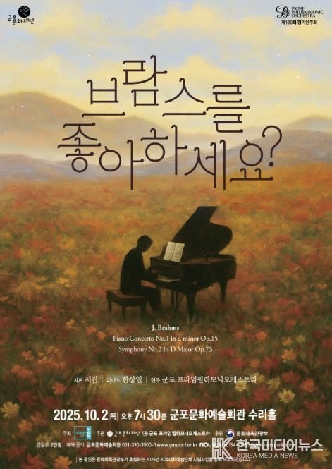 [ 한국미디어뉴스 이보영 기자 ] (재)군포문화재단은 오는 10월 2일 오후 7시 30분, 수리홀에서 기획공연 “가을음악회 : 브람스를 좋아하세요?”를 개최한다.