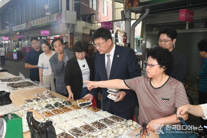 이번 행사는 고물가와 경기 침체로 어려움을 겪는 전통시장에 활력을 불어넣고 지역경제 활성화를 도모하기 위해 마련됐다. 먼저 의원과 직원 20여 명은 북부시장 상인회와 간담회를 갖고 현장의 애로사항을 청취하며 활성화 방안을 논의했다.
